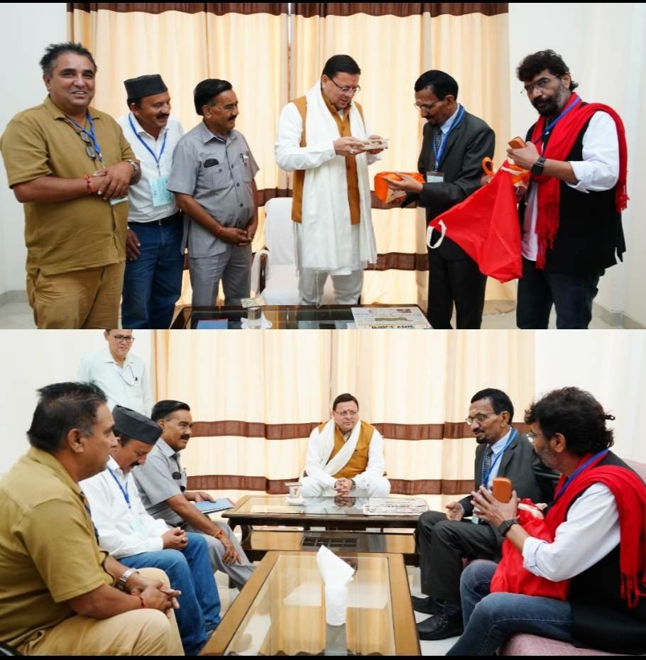 मुख्यमंत्री श्री पुष्कर सिंह धामी से गुरुवार को गैरसैंण (भराड़ीसैंण) स्थित मुख्यमंत्री आवास में जनपद चमोली के विभिन्न पत्रकार संगठनों के प्रतिनिधियों, वरिष्ठ पत्रकारों के शिष्टमंडल ने शिष्टाचार भेंट की।