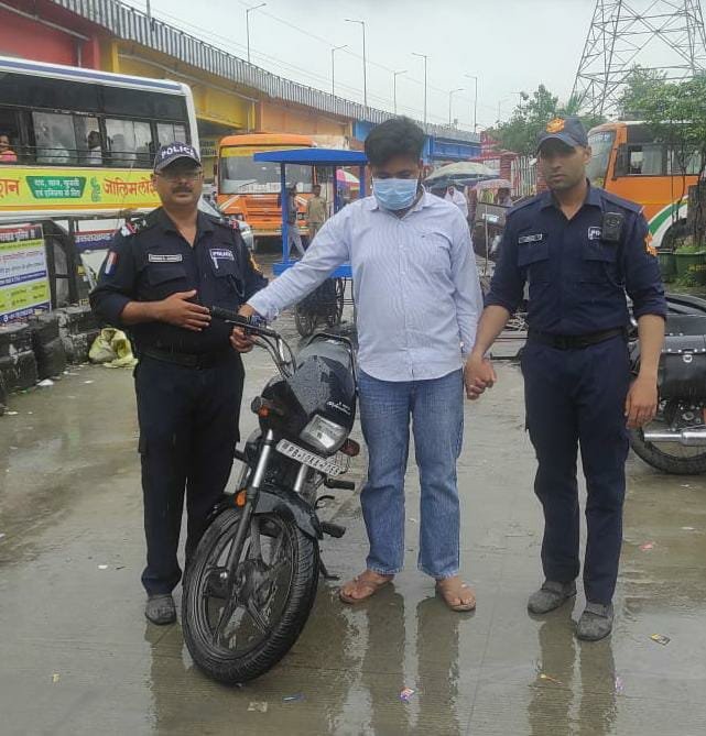 देहरादून, सेंट ज्यूड चौक के पास सी0पी0यू0 देहरादून द्वारा वाहन चैकिंग के दौरान पंजाब नम्बर की एक स्प्लेंडर मोटर साइकिल संख्या: पीबी-10-केए-7068 को चैकिंग हेतु रोका गया। वाहन चालक से नाम पता पूछने पर उसके द्वारा अपना नाम रिहान पुत्र रिजवान हसन निवासी चकोवाली थाना रामपुर मनिहारान सहारनपुर बताया गया, जिससे वाहन के सम्बन्ध में पूछताछ करने पर वह सही जानकारी नहीं दे पाया। संदिग्धता प्रतीत होने पर उक्त वाहन के नम्बर से उसकी डिटेल निकालते हुए वाहन स्वामी के नम्बर पर सम्पर्क किया गया तो वाहन स्वामी मनिन्दर सिंह द्वारा उक्त वाहन को अज्ञात व्यक्ति द्वारा पंजाब से चोरी किये जाने तथा घटना के सम्बन्ध में पंजाब में चोरी का अभियोग पंजीकृत होने की जानकारी दी गई, जिस पर सीपीयू टीम द्वारा अग्रिम कार्यवाही हेतु वाहन को चौकी आईएसबीटी पर लाया गया। वाहन के सम्बन्ध में जानकारी करने पर अभियुक्त रिहान द्वारा उक्त वाहन को पंजाब निवासी गुलाब नाम के व्यक्ति से खरीदने की जानकारी दी गई है।