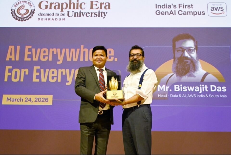 एडब्ल्यूएस (भारत एवं दक्षिण एशिया) डेटा और एआई हेड श्री बिस्वजीत दास आज ग्राफिक एरा डीम्ड यूनिवर्सिटी में आयोजित एक विशेष सत्र को संबोधित कर रहे थे। श्री बिस्वजीत दास ने कहा कि व्यवसाय एआई का उपयोग अनुभव सुधारने, कार्यक्षमता बढ़ाने और नए प्रयोगों के लिए कर रहे हैं। एआई बड़े आयोजनों का सारांश बनाकर समय बचाता है और टैक्स जैसी प्रक्रियाओं को सरल करता है। भविष्य में एआई काम के तरीके बदलकर नई संभावनाएं खोलेगा।