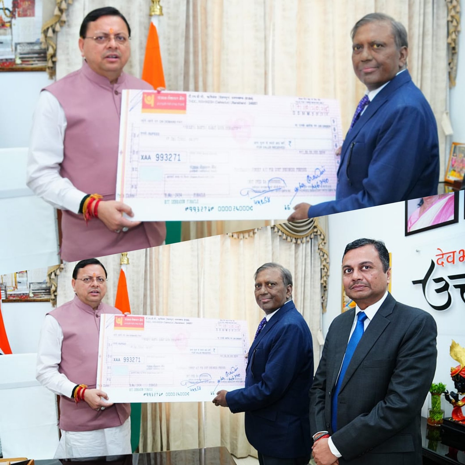 टीएचडीसी इंडिया लिमिटेड ने उत्तराखंड सीएम राहत कोष में दिया 1 करोड़ रुपये का अंशदान