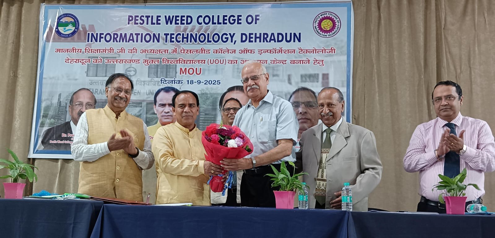 पेसल वीड कॉलेज ऑफ इन्फॉरमेशन टैक्नोलोजी, देहरादून को उत्तराखण्ड मुक्त विश्वविद्यालय का अध्ययन केंद्र बनाने हेतु समझौता ज्ञापन पर हस्ताक्षर किया गया