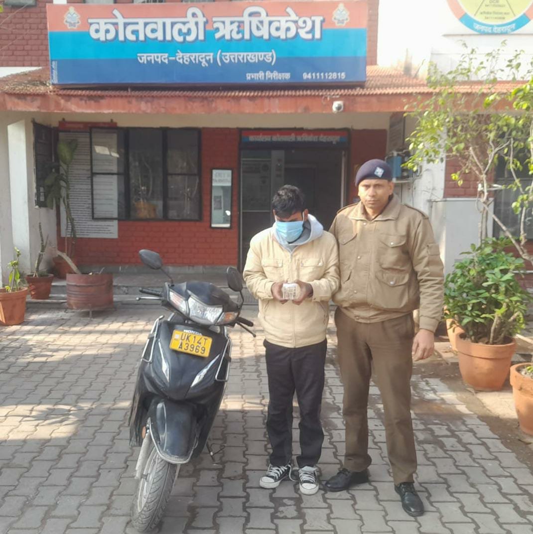 महिला से कुण्डल स्नेचिंग करने वाला शातिर गिरफ्तार, स्कूटी समेत माल बरामद