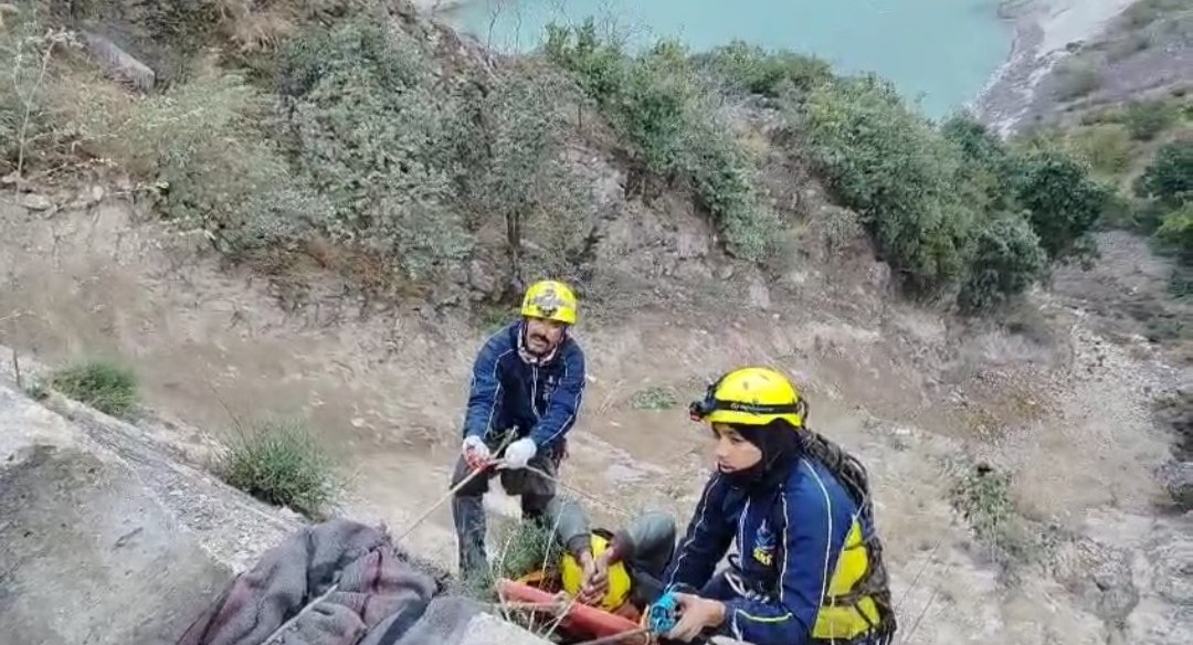 एसडीआरएफ का साहसिक रेस्क्यू: 150 मीटर गहरी खाई में गिरे ट्रक से दो घायलों को सुरक्षित निकाला
