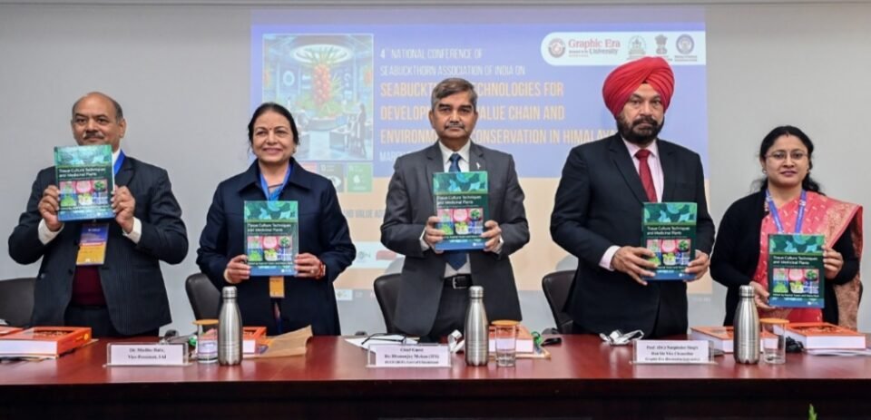 ग्राफिक एरा डीम्ड यूनिवर्सिटी में हिमालय के संरक्षण में सीबकथोर्न तकनीकों की भूमिका पर राष्ट्रीय सम्मेलन का आयोजन किया गया। दो दिवसीय सम्मेलन को आज राज्य के फोरेस्ट फोर्स के प्रमुख डा. धनंजय मोहन ने मुख्य अतिथि के रूप में सम्बोधित करते हुए कहा कि ज्यादातर औषधीय पेड़-पौधे हिमालयी क्षेत्रों में पाये जाते हैं। लेह, हिमाचल प्रदेश व उत्तराखण्ड के सूदूर इलाकों में उगने वाला सीबकथोर्न हिमालयी क्षेत्रों की जैव विविधता के लिये महत्वपूर्ण संसाधन बन सकता है। यह झाड़ी सीमांत क्षेत्रों में मिट्टी के कटाव की रोकथाम, भूमि सुधार के साथ आर्थिक व सामाजिक विकास में योगदान देगा। उन्हांेने बद्रीफल के व्यावसायीकरण के लिये किसानों को जागरूक करने की आवश्यकता पर जोर दिया।