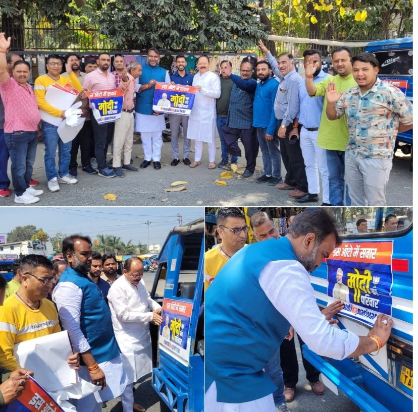 देहरादून भारतीय जनता पार्टी महानगर के अध्यक्ष सिद्धार्थ उमेश अग्रवाल जी के नेतृत्व में सैकड़ो कार्यकर्ताओं के द्वारा सभी ऑटो विक्रम पर *ऑटो में सवार मोदी परिवार* के पोस्टर को लगवाया गया।