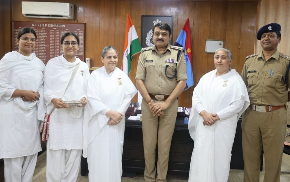रक्षाबंधन के पावन अवसर पर ब्रह्मकुमारी संस्था, देहरादून से आई बहनों ने शनिवार को वरिष्ठ पुलिस अधीक्षक (एसएसपी) देहरादून से शिष्टाचार भेंट की। इस मौके पर बहनों ने एसएसपी को राखी बांधकर उनकी दीर्घायु और कुशल नेतृत्व की मंगलकामनाएं कीं।