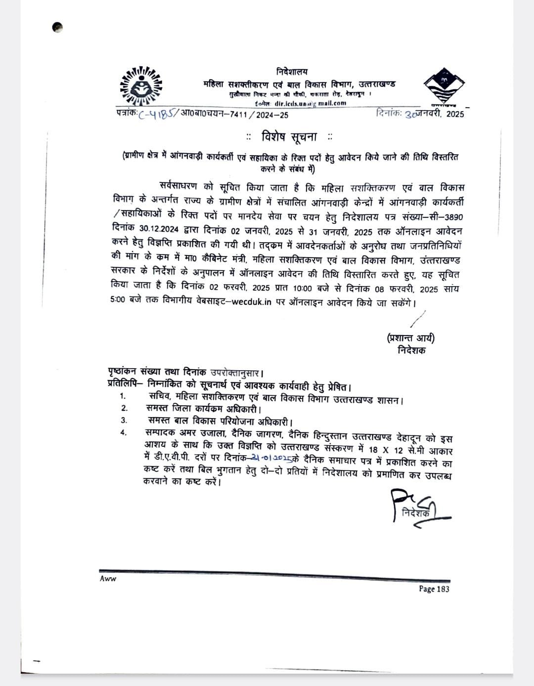 आंगनबाड़ी और सहायिका पदों के लिए आवेदन अब 8 फरवरी तक