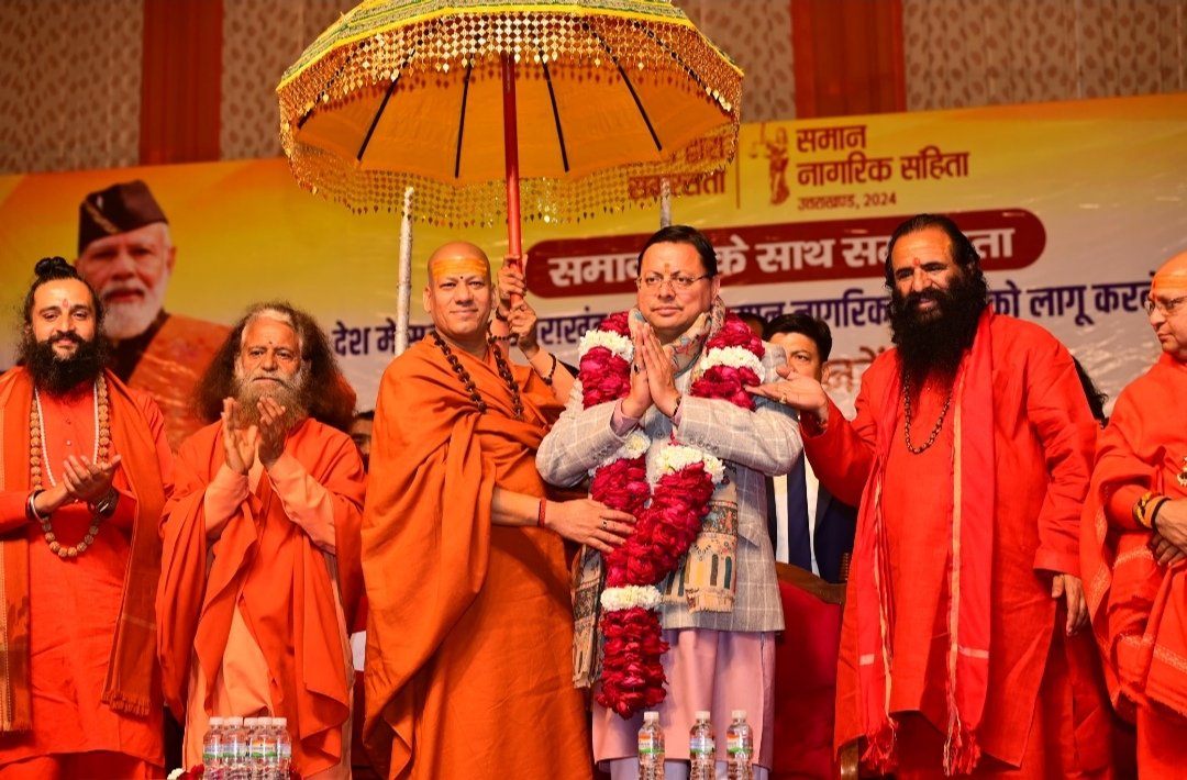 समान नागरिक संहिता लागू करने पर संत समाज ने प्रयागराज महाकुंभ में मुख्यमंत्री का अभिनंदन