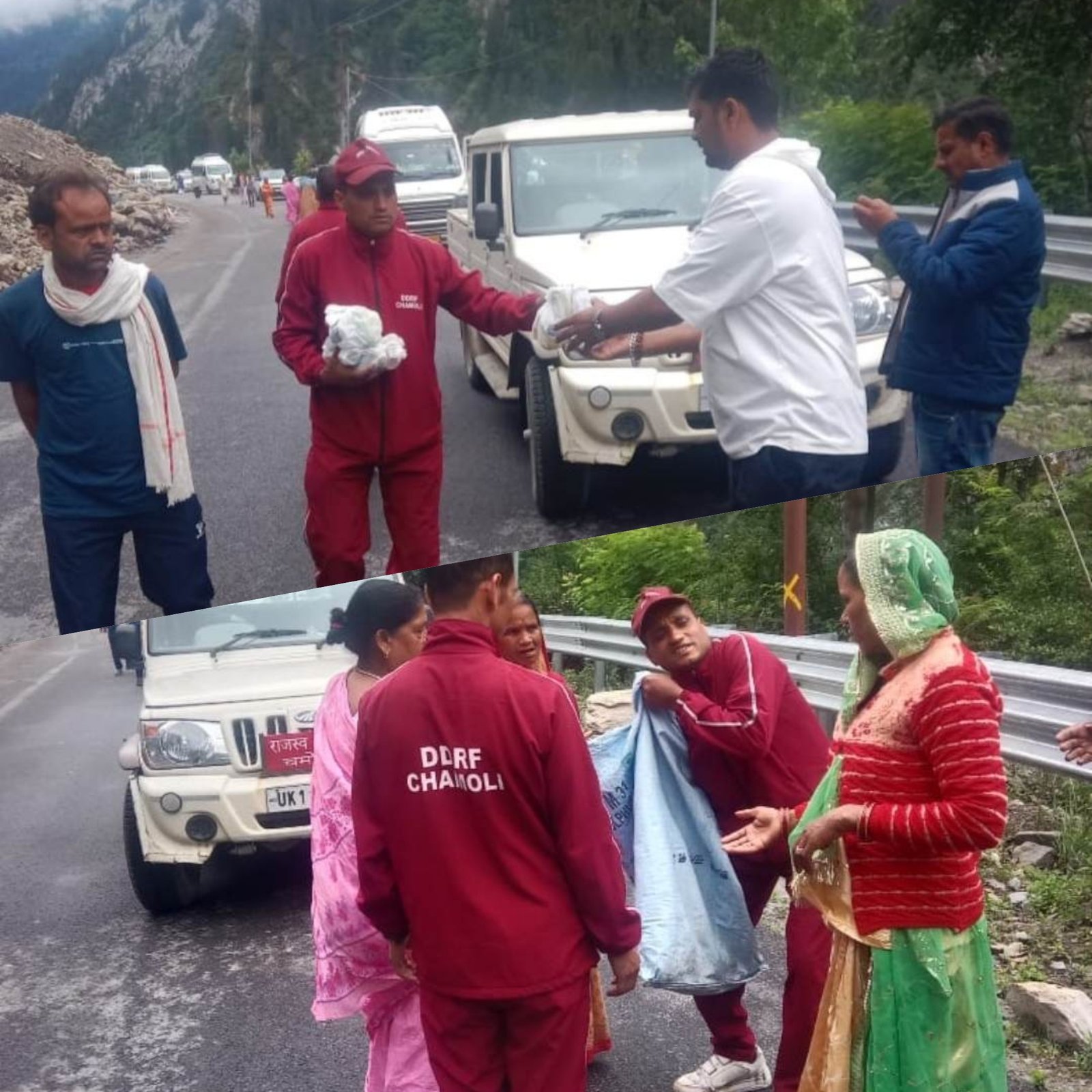 यात्रा मार्ग अवरुद्ध होने पर रुके तीर्थयात्रियों को प्रशासन ने बांटी राहत सामग्री