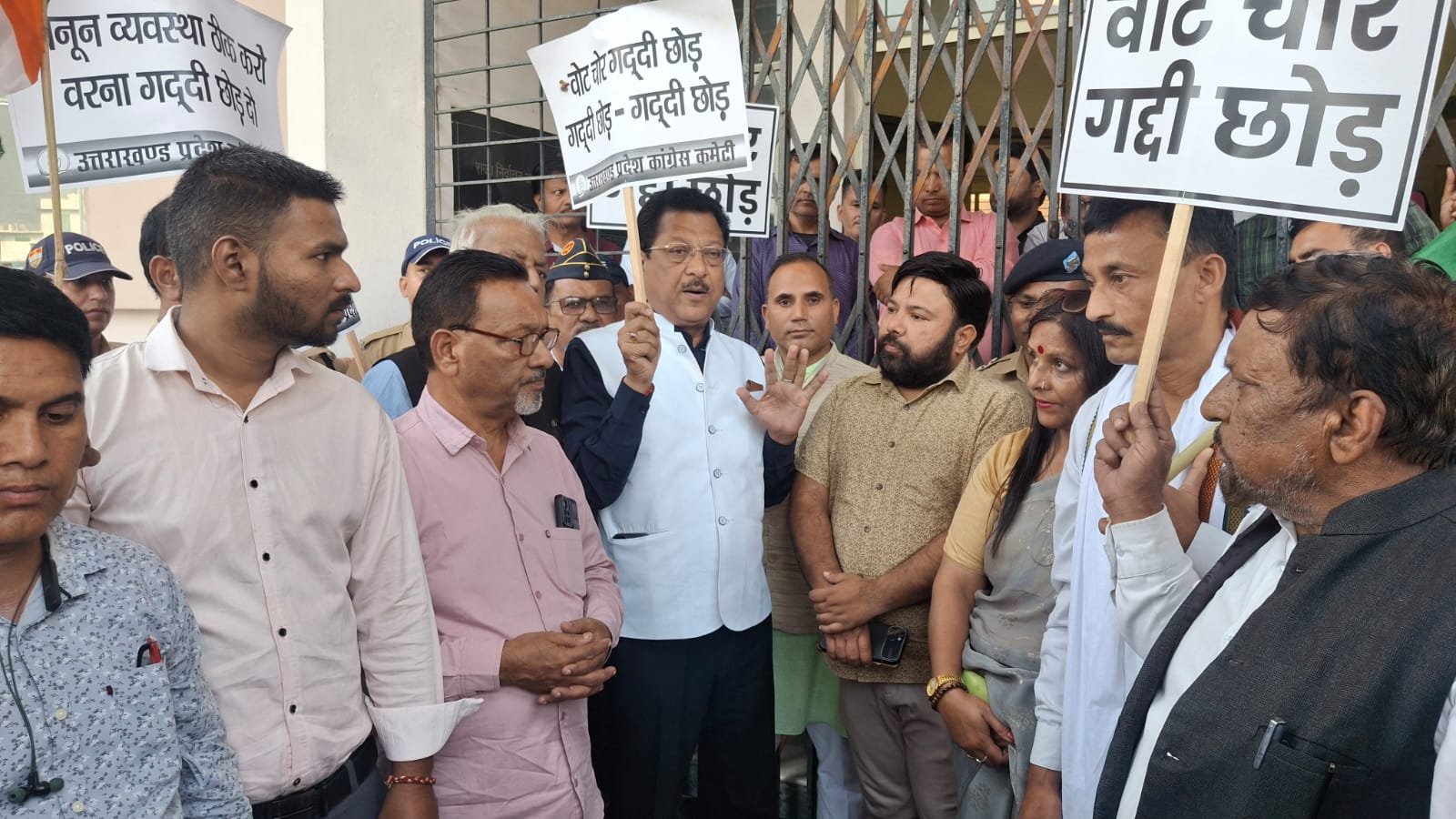 कांग्रेस कार्यकर्ताओं ने किया जबरदस्त प्रदर्शन, राज्य निर्वाचन आयुक्त को बर्खास्त करने की मांग