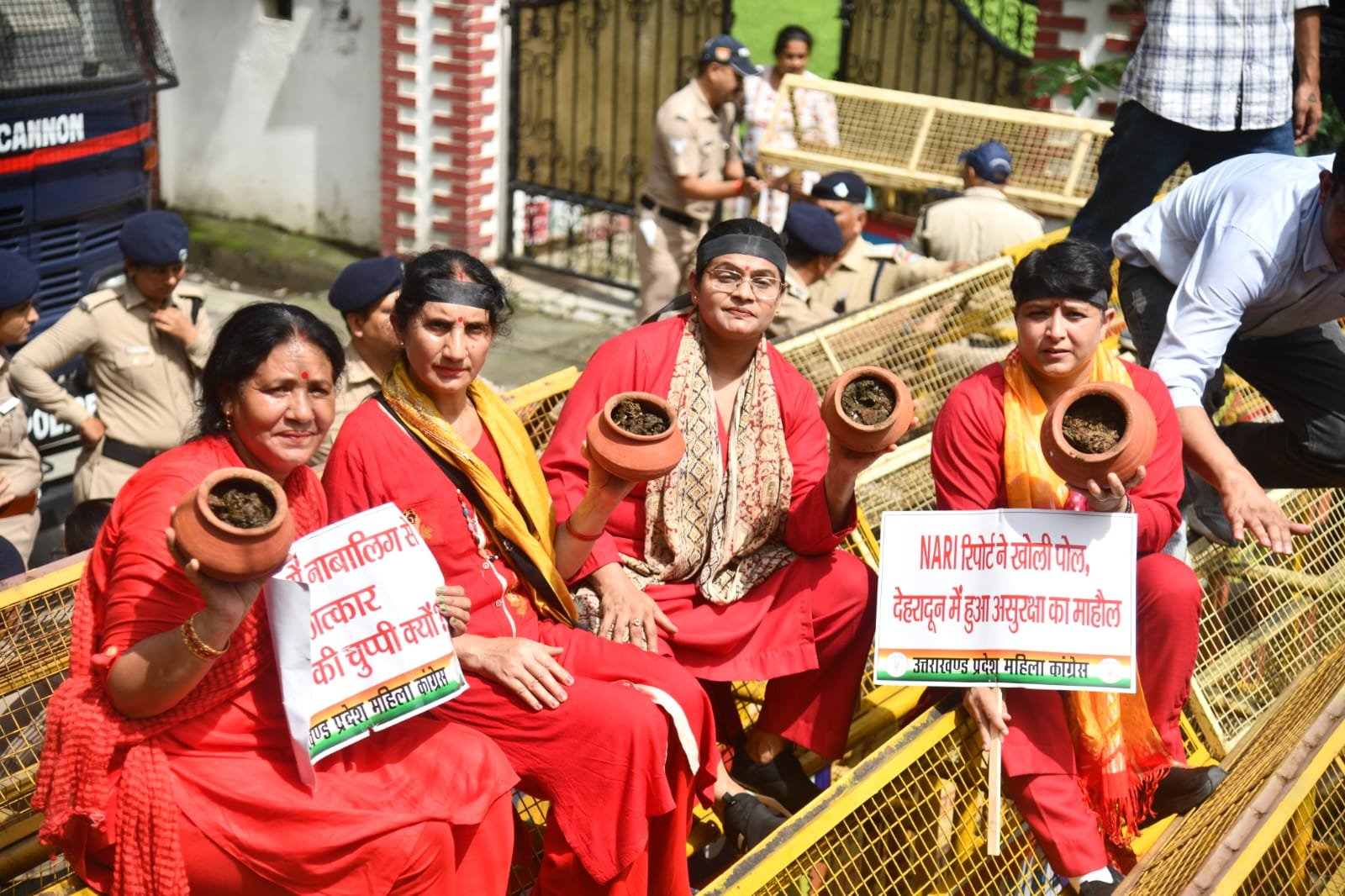 महिला कांग्रेस ने भाजपा कार्यालय का किया घेराव, गौमूत्र व गोबर से किया “शुद्धिकरण”