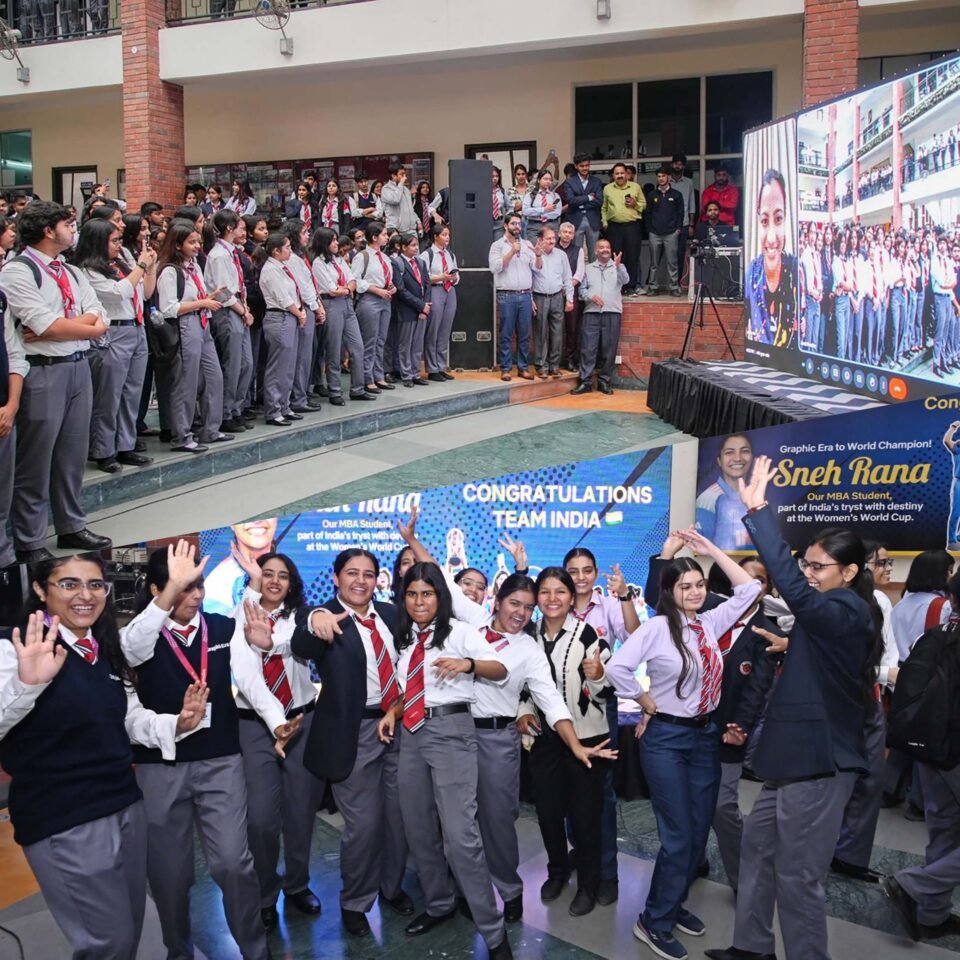 महिला वर्ल्ड कप जीतने पर ग्राफिक एरा में जश्न स्नेह राणा ने कहा—जो करें, दिल से करें