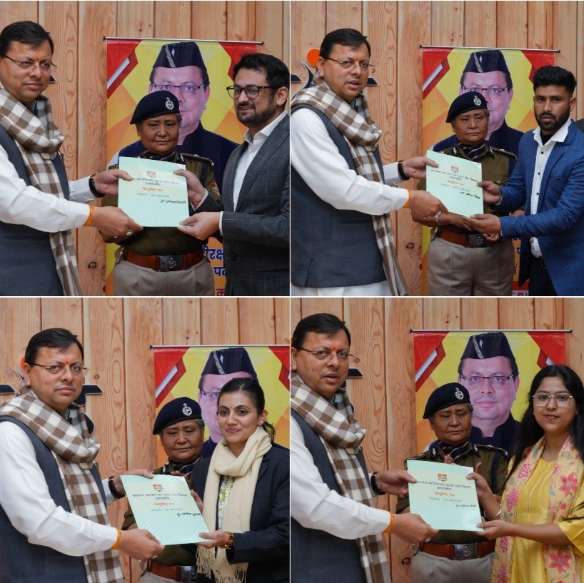 देहरादून,मुख्यमंत्री पुष्कर सिंह धामी ने शनिवार को मुख्यमंत्री आवास परिसर में कारागार प्रशासन एवं सुधार सेवा विभाग के अंतर्गत लोक सेवा आयोग द्वारा चयनित 27 डिप्टी जेलरों तथा 285 बंदी रक्षकों को नियुक्ति -पत्र वितरित किये। इस प्रकार आज कुल 312 अभ्यर्थियों को नियुक्ति -पत्र प्रदान किये गये l