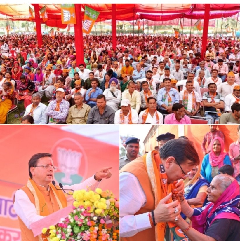 हरिद्वार लोकसभा के अंतर्गत बादशाहपुर में भाजपा प्रत्याशी श्री त्रिवेंद्र सिंह रावत के समर्थन में आयोजित जनसभा को संबोधित करते हुए मुख्यमंत्री श्री पुष्कर सिंह धामी ने कहा कि हरिद्वार में प्रधानमंत्री जी के सानिध्य में विकास के नए आयाम स्थापित हो रहे हैं। उन्होंने जनता से अपील की, की 19 अप्रैल को त्रिवेंद्र जी को वोट देकर आप नया इतिहास रचें। उन्होंने कहा कि हरिद्वार में पूरी तरह से भाजपा की लहर चल रही है।