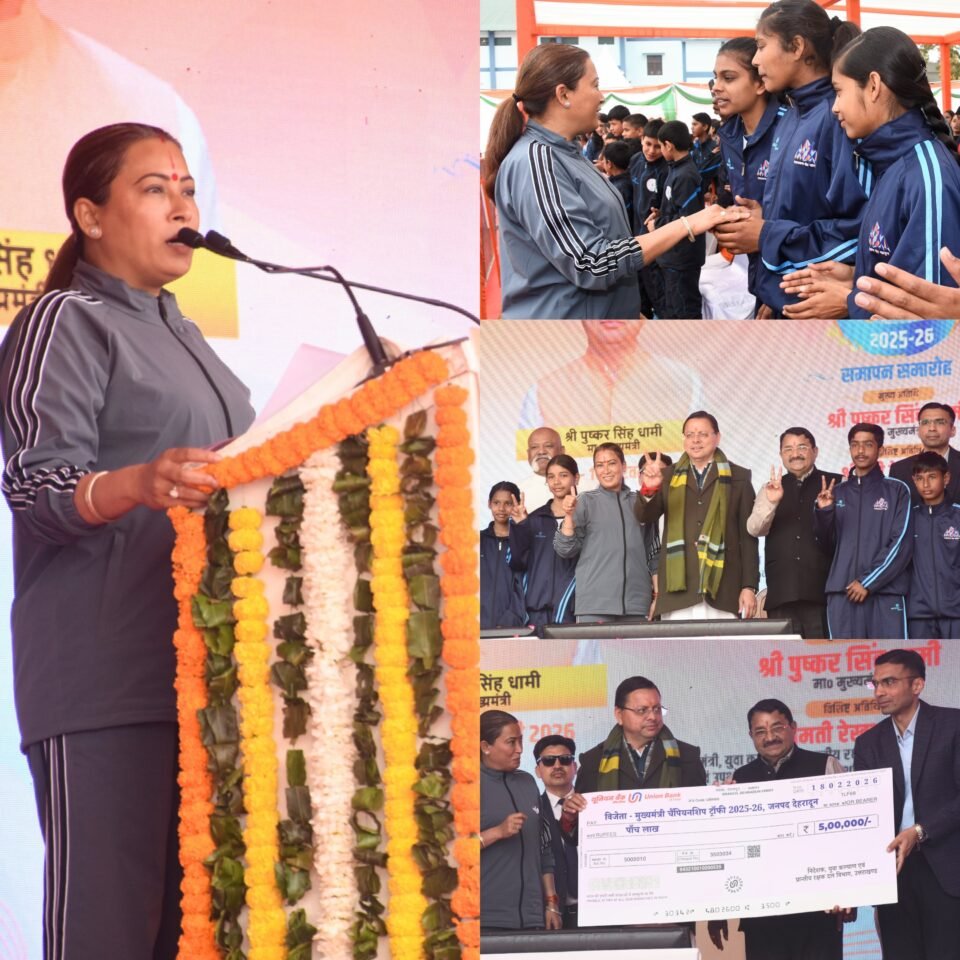 देहरादून, ननूरखेड़ा मिनी स्टेडियम में आयोजित मुख्यमंत्री चैंपियनशिप ट्रॉफी 2025-26 के राज्य स्तरीय मुकाबलों में देहरादून जनपद की टीम ने शानदार प्रदर्शन करते हुए पहली बार ट्रॉफी अपने नाम की। विजेता टीम को प्रदेश के मुख्यमंत्री पुष्कर सिंह धामी और कैबिनेट मंत्री रेखा आर्या ने ट्रॉफी एवं 5 लाख रुपये का चेक प्रदान कर सम्मानित किया।