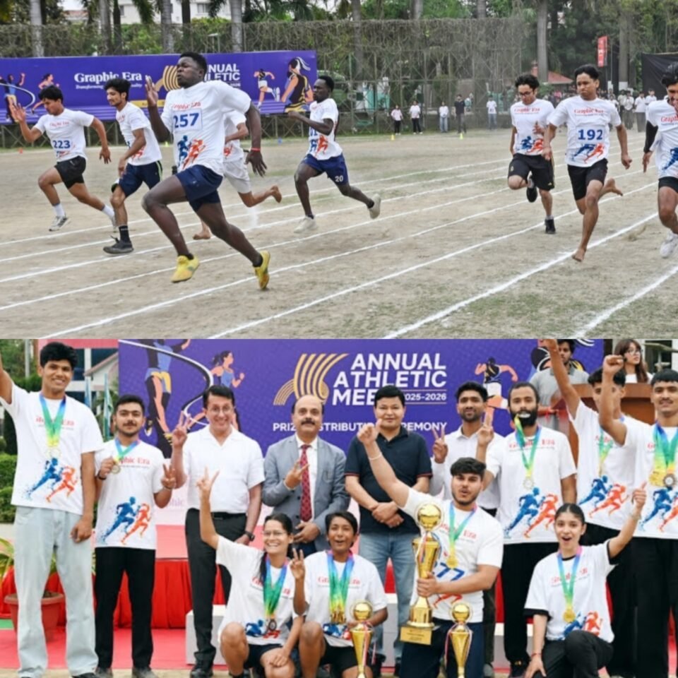 ग्राफिक एरा डीम्ड यूनिवर्सिटी में वार्षिक एथलेटिक मीट 2026 में ग्राफिक एरा डीम्ड यूनिवर्सिटी से 3272 छात्र छात्राओं और ग्राफिक एरा हिल यूनिवर्सिटी से 5539 छात्र छात्राओं ने जोश, ऊर्जा और अपनी खेल प्रतिभा का प्रदर्शन किया। सात दिन चली इस एथलेटिक मीट में ग्राफिक एरा डीम्ड यूनिवर्सिटी में बेस्ट एथलीट बॉयज़ श्रेणी का खिताब बीटेक के छात्र जेम्स एवर को मिला और गर्ल्स श्रेणी में बीसीए की छात्रा प्रेमा थापा ने यह खिताब अपने नाम किया। बेस्ट डिपार्टमेंट का खिताब बीसीए विभाग ने सर्वाधिक स्वर्ण पदक जीतकर अपने नाम किया। ग्राफिक एरा हिल यूनिवर्सिटी में बेस्ट एथलीट का खिताब बॉयज़ श्रेणी में बीवोक के छात्र विजय नेगी ने जीता, गर्ल्स श्रेणी में बीबीए की छात्रा कृतिका ने यह खिताब अपने नाम किया। बेस्ट डिपार्टमेंट का खिताब मैनेजमेंट विभाग ने कई स्वर्ण और रजत पदक जीतकर अपने नाम किया।