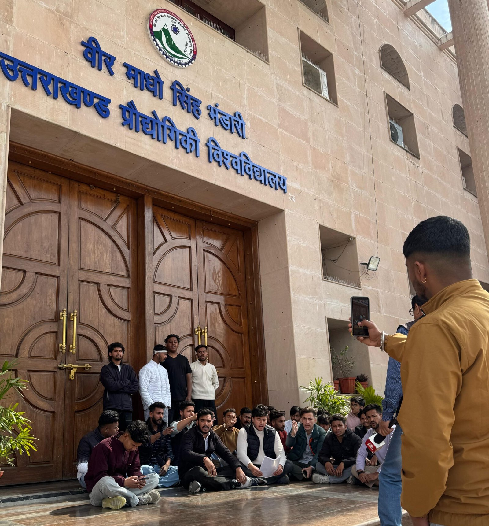 देहरादून, उत्तराखंड तकनिकी विश्विद्यालय में चल रहे फ़र्ज़ी डिग्री जाँच प्रकरण में मंगलवार को उस वक्त नया मोड़ आ गया जब डी.ए.वी. छात्र संघ अध्यक्ष सिद्धार्थ अग्रवाल के नेतृत्व में छात्र संघटनो ने वाईस चांसलर डॉ. ओमकार सिंह, एवं परीक्षा नियंत्रक डॉ. वी. के. पटेल से नैतिकता के आधार पर इस्तीफे के मांग की !