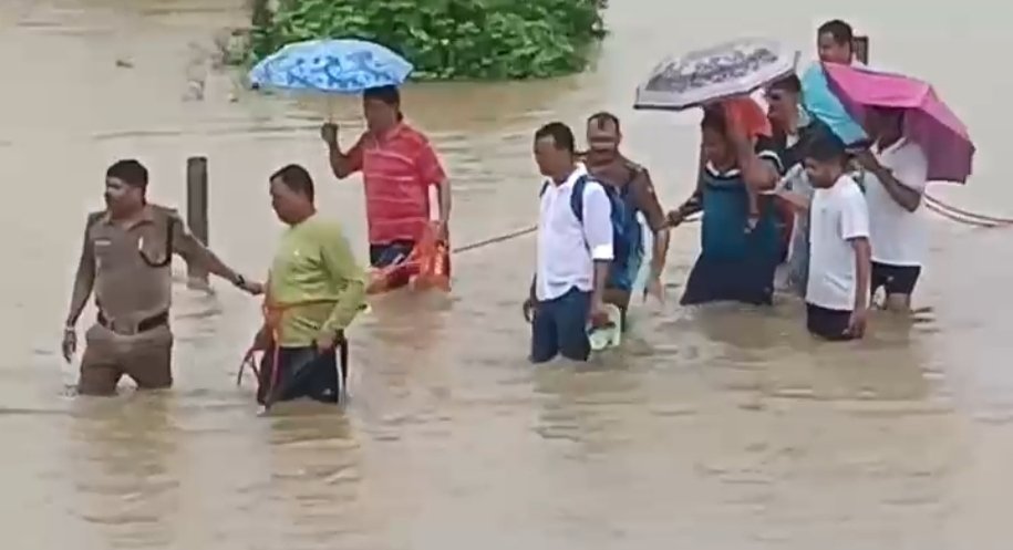 भारी वर्षा के चलते आसन नदी का जलस्तर बढ़ा, क्षेत्र जलमग्न — पुलिस ने चलाया रेस्क्यू अभियान