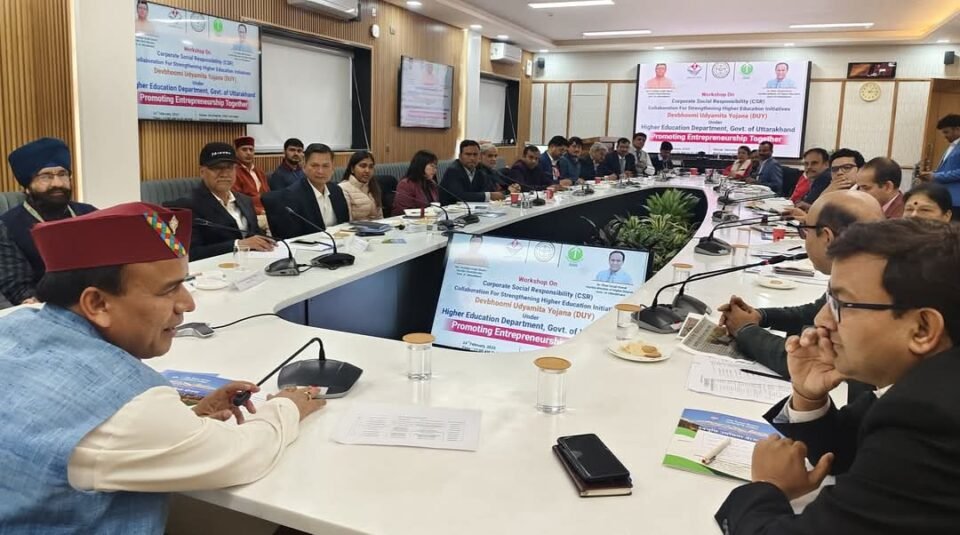 उत्तराखण्ड सरकार और भारतीय उद्यमिता विकास संस्थान, अहमदाबाद के संयुक्त प्रयास से राज्य में उच्च शिक्षा और उद्यमिता विकास के लिए कॉर्पाेरेट सोशल रिस्पॉन्सिबिलिटी (सीएसआर) की भूमिका पर एक विशेष कार्यशाला मुख्य सचिव सभागार में आयोजित की गई। कार्यशाला का उद्देश्य सीएसआर के माध्यम से उच्च शिक्षा और उद्यमिता को सशक्त बनाना तथा संस्थागत सहयोग को प्रोत्साहित करना था।