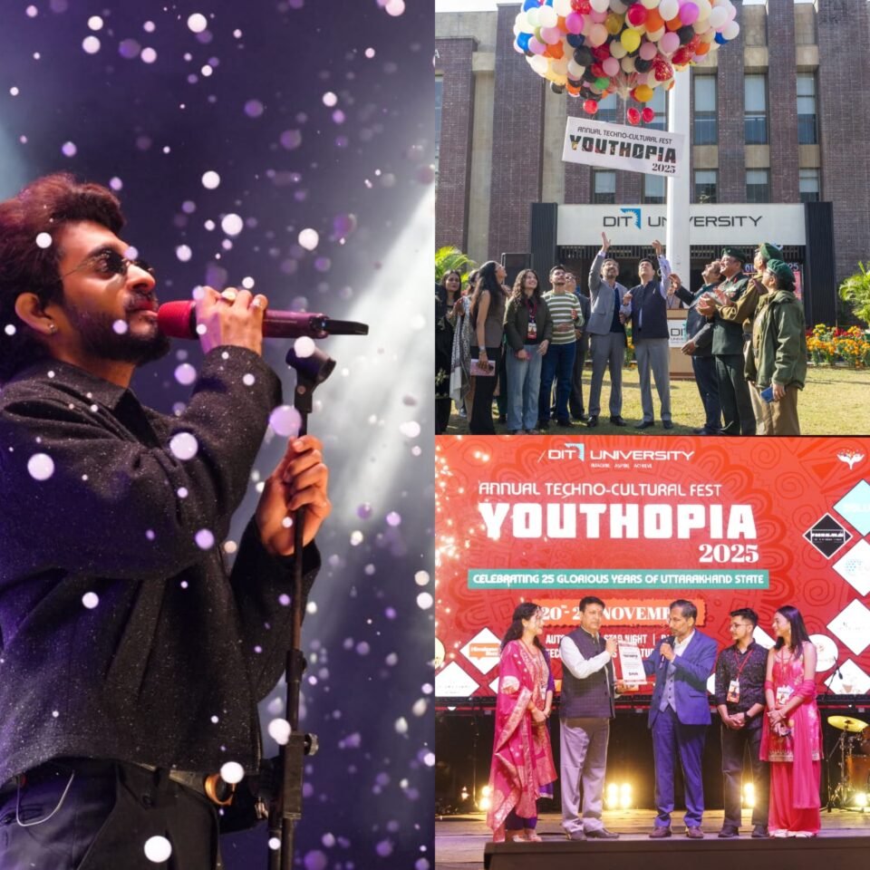 देहरादून,यूथोपिया 2025, डीआइटी विश्वविद्यालय का बहुप्रतीक्षित वार्षिक टेक्नो-कल्चरल फेस्ट, 20 से 22 नवंबर तक पूरे कैम्पस में उत्साह और ऊर्जा का संचार करता रहा। डीआइटी की 25+ वर्षों की समृद्ध विरासत का जश्न मनाते हुए यह आयोजन रचनात्मकता, प्रतिभा, नवाचार और एकता का अद्भुत संगम बना, जिसने छात्रों को अपने कौशल प्रदर्शित करने का मंच प्रदान किया।