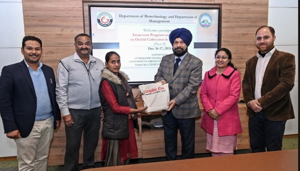 देहरादून, ग्राफिक एरा के विशेषज्ञ महिलाओं को आर्किड उत्पादन की ट्रेनिंग दे रहे हैं। यह ट्रेनिंग आज ग्राफिक एरा डीम्ड यूनिवर्सिटी में शुरू हो गई।
