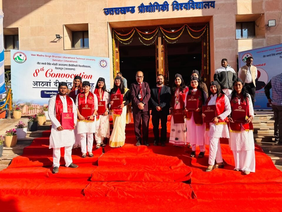 बी.टेक सिविल इंजीनियरिंग की शिवानी नेगी ने पुरे उत्तराखंड को टॉप किया है उन्हें सिविल इंजीनियरिंग में गोल्ड मैडल मिला ! साथ ही भाव्या गुप्ता को ऍम.फार्मा (फार्माकोलॉजी) में गोल्ड मेडल, आरती कुमारी पांडेय को ऍम.फार्मा (फार्मासुटीक्स) में गोल्ड मेडल, ऊर्वशी गर्ग को ऍम.फार्मा (फार्माकोलॉजी) में सिल्वर मैडल एवं अयुश कश्यप को बी.टेक इलेक्ट्रिकल एवं इलेक्ट्रॉनिक्स में ब्रोंज मैडल प्रदान किये गए !