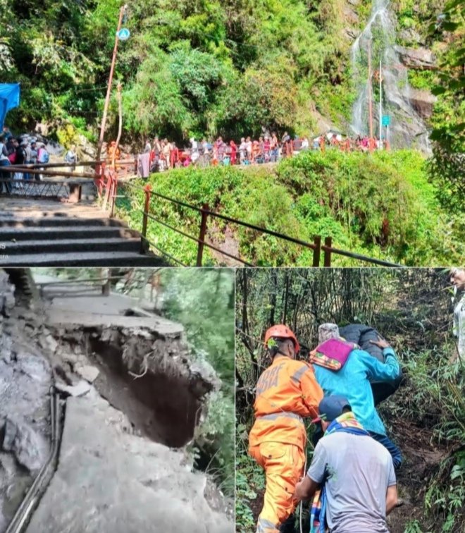 श्री केदारनाथ धाम यात्रा का द्वितीय चरण प्रचलित है। मानसूनी बारिश लगभग समाप्ति की ओर है, इस बार हुई भारी बारिश के चलते समय-समय पर श्री केदारनाथ पैदल मार्ग काफी स्थानों पर क्षतिग्रस्त होता आया है। अब जबकि मानसूनी बारिश के लगभग समाप्त होने पर यात्रा के पूरी तरह से वापस पटरी पर लौटने के आसार नजर आ रहे थे, ऐसे में देर रात्रि को गौरीकुण्ड से केदारनाथ धाम तक जाने वाला पैदल मार्ग स्थान जंगल चट्टी के पास भू-धंसाव के चलते तकरीबन 10 से 15 मीटर पूरी तरह से क्षतिग्रस्त हो गया है। आज भोर काल से ही यात्रियों की सुरक्षा के दृष्टिगत इस स्थान पर स्थानीय पुलिस, एसडीआरएफ, एनडीआरएफ, डीडीआरएफ की टीमें मौजूद हैं। सम्बन्धित कार्यदायी संस्था पीडब्ल्यूडी के स्तर से वैकल्पिक स्थल चिन्हित कर वैकल्पिक मार्ग तैयार करने की दिशा में कार्यवाही युद्ध स्तर पर प्रारम्भ कर दी गयी है।