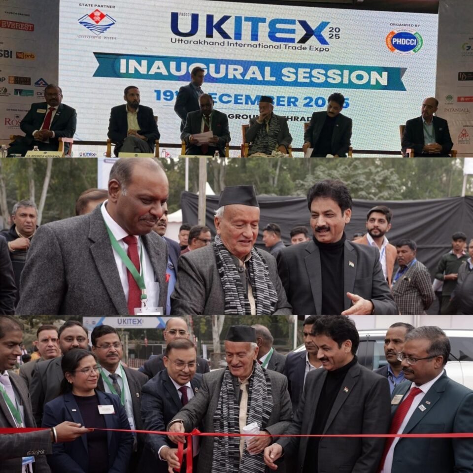 देहरादून, पूर्व राज्यपाल (महाराष्ट्र) एवं उत्तराखंड के पूर्व मुख्यमंत्री भगत सिंह कोश्यारी ने परेड ग्राउंड, देहरादून में उत्तराखंड इंटरनेशनल ट्रेड एक्सपो (UKITEX 2025) का विधिवत उद्घाटन किया। इस अवसर पर उन्होंने पीएचडी चैंबर ऑफ कॉमर्स एंड इंडस्ट्री (PHDCCI) द्वारा आयोजित UKITEX के पहले संस्करण की सराहना करते हुए इसे राज्य के एमएसएमई, स्वयं सहायता समूहों और उद्यमियों के लिए एक सशक्त मंच बताया।