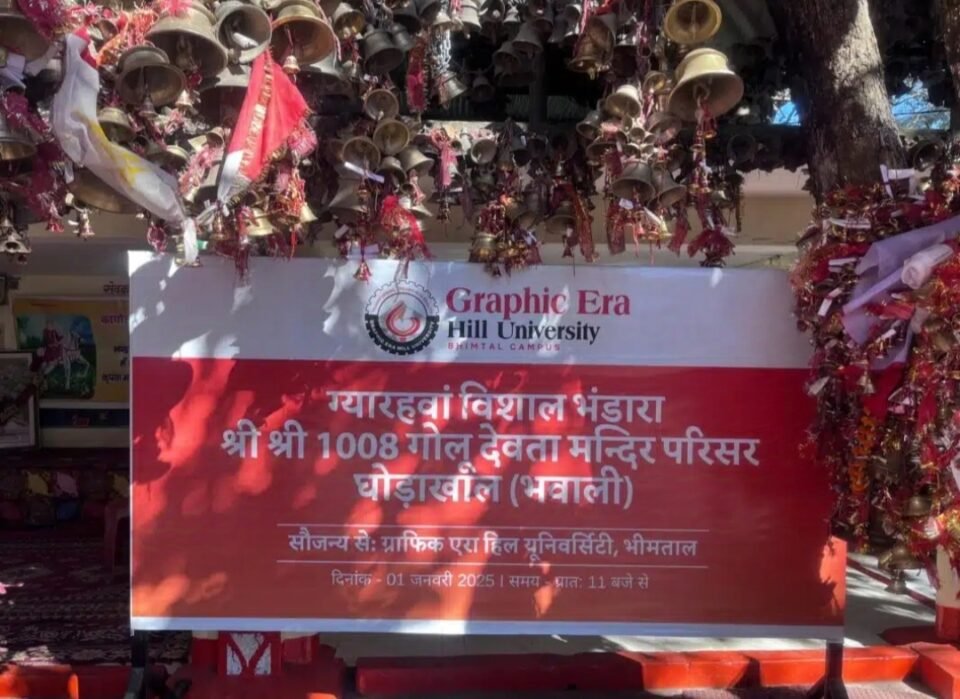 देहरादून/नैनीताल, नव वर्ष 2025 के अवसर पर Graphic Era Hill University ने घोड़ाखाल स्थित प्रसिद्ध श्री श्री 1008 गोलू देवता मंदिर में 11वें विशाल भंडारे का आयोजन किया। इस भंडारे में करीब 5000 श्रद्धालुओं ने प्रसाद ग्रहण किया। हर साल नव वर्ष के पहले दिन यहां बड़ी संख्या में श्रद्धालु इस मंदिर में दर्शन के लिए आते हैं। इस बार, ग्राफिक एरा ने श्रद्धालुओं की सुविधाओं को ध्यान रखते हुए यह भंडारा आयोजित किया, जिसमें संस्थान के स्टाफ और स्वयंसेवकों ने बड़ी जिम्मेदारी से अपनी भूमिका निभाई।