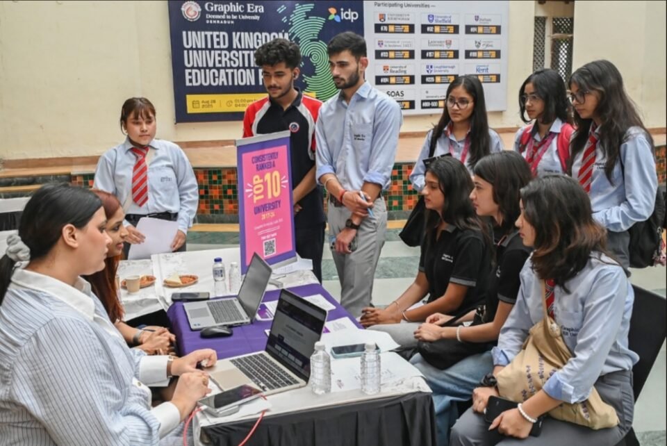 देहरादून, ग्राफिक एरा में विदेश में पढ़ने के इच्छुक छात्र-छात्राओं के लिए लगा यूके की यूनिवर्सिटीज़ का मेला। इस मेले में यूनाइटेड किंगडम्स की दस यूनिवर्सिटीज़ ने भाग लिया।