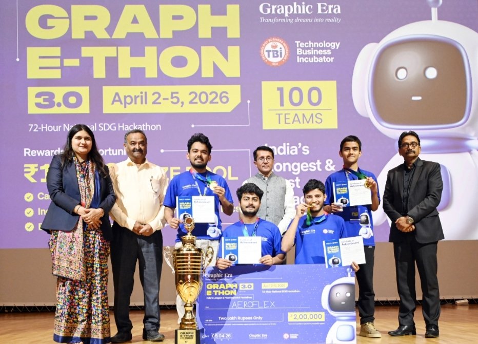 ग्राफिक एरा डीम्ड यूनिवर्सिटी में विभिन्न क्षेत्रों से जुड़ी वास्तविक चुनौतियों के समाधान खोजने के लिए 72 घंटे की हैकाथॉन ‘ग्राफ-ए-थॉन 3.0’ का आयोजन किया गया। इस प्रतियोगिता में देश के 23 राज्यों से आई 100 टीमों ने स्वास्थ्य, शिक्षा, स्वच्छ ऊर्जा, एग्रीटेक और साइबर सिक्योरिटी जैसे क्षेत्रों की जटिल समस्याओं के लिए अपने-अपने नवाचारी समाधान प्रस्तुत किए। इनमें एआई और आईओटी आधारित मॉड्यूलर ड्रोन डिजाइन, श्रमिकों की सुरक्षा सुनिश्चित करने के लिए रियल टाइम एआई संचालित स्मार्ट हेलमेट, एआई और आईओटी के माध्यम से ग्राउंड वाटर मॉनिटरिंग रिसर्च प्रोजेक्ट और राजस्थान के जल संकट के लिए स्मार्ट सिंचाई प्रणाली जैसे समाधान शामिल रहे। ग्राफ-ए-थॉन में देहरादून की टीम एरोफ्लेक्स (गौरव शुक्ला की टीम ) ने प्रथम स्थान हासिल किया, वहीं देहरादून की टीम सिंटैक्स एरर स्क्वाड (अंशिता गोयल की टीम) ने द्वितीय स्थान और भोपाल की टीम लिट स्क्वाड (अमन कहर की टीम) ने तृतीय स्थान हासिल कर नकद इनाम जीते।