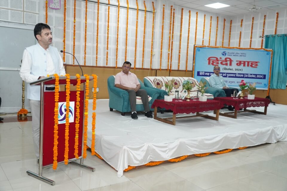 टीएचडीसी में सितंबर, 2024 हिंदी माह के रूप में मनाया गया। जिसका समापन एवं पुरस्कार वितरण समारोह आज श्री शैलेन्द्र सिंह, निदेशक(कार्मिक) की अध्यक्षता में आयोजित किए गया। कार्यक्रम का शुभारंभ दीप प्रज्ज्वलित कर किया गया । श्री सिंह के कर-कमलों से हिंदी माह के दौरान आयोजित की गई प्रतियोगिताओं एवं निगम में लागू विभिन्न प्रोत्साहन योजनाओं के अंतर्गत अधिकारियों व कर्मचारियों को पुरस्कृत किया गया।