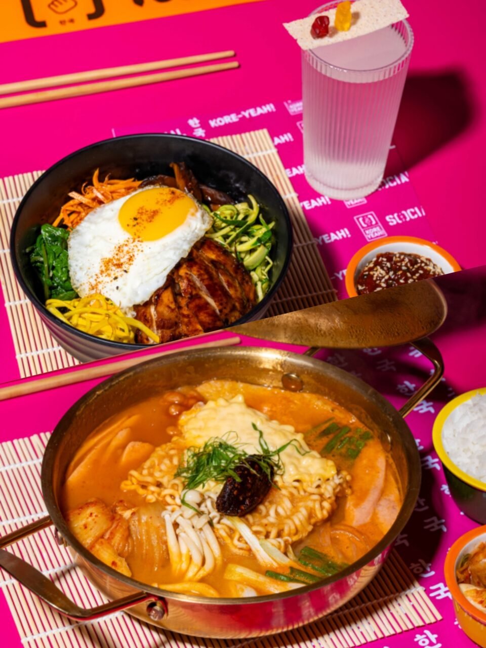 सट्टोरी फूड लैब से शेफ येन वालावलकर और शेफ सूनी चोई, और इम्प्रेसारियो एंटरटेनमेंट एंड हॉस्पिटैलिटी प्राइवेट लिमिटेड के ग्रुप एक्जीक्यूटिव शेफ शम्सुल वाहिद द्वारा तैयार किए गए फूड मेन्यू में कोरियाई व्यंजन जैसे कि टोकबोक्की, किमबाप और कोरियाई फ्राइड चिकन शामिल हैं। सोशल ने नेस्ले मैगी कोरियन नूडल्स के साथ साझेदारी कर विभिन्न प्रकार के रेमन बाउल भी पेश किए हैं। फेस्टिवल के ड्रिंक ऑफरिंग में सोजू किम्ची हाईबॉल, सोमैक, द एटिपिकल संगरिया और हल्लु लीची बोबा जैसी कोरियाई-प्रेरित रचनाएँ शामिल हैं।