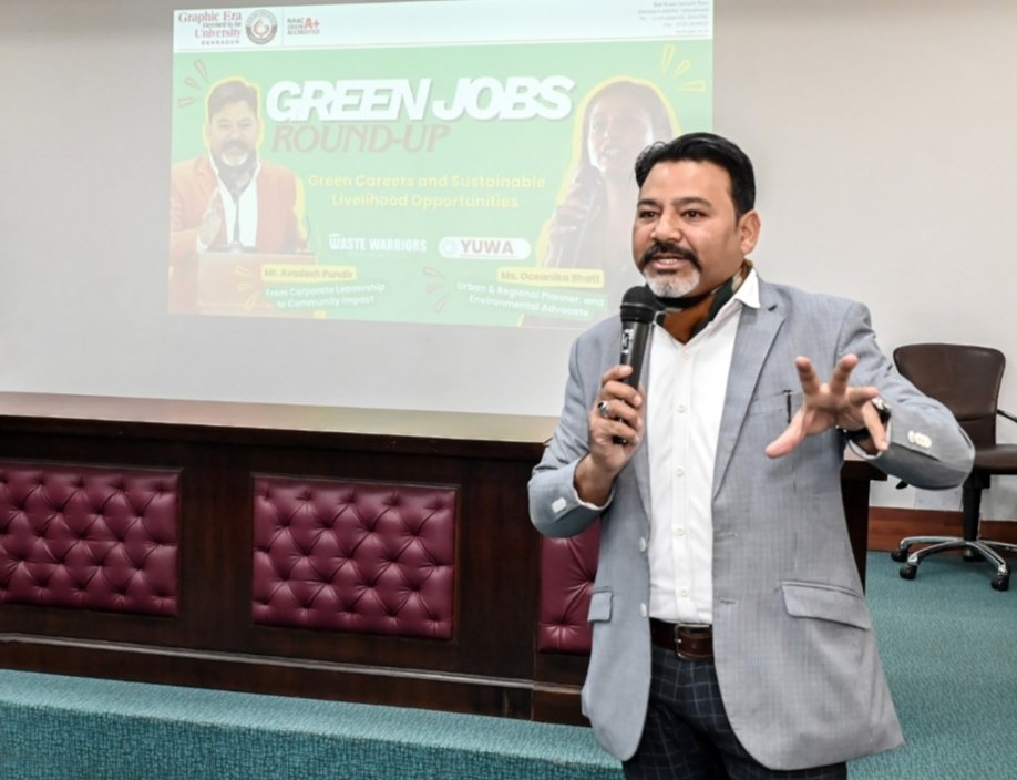 देहरादून, ग्राफिक एरा डीम्ड यूनिवर्सिटी में छात्रों को सतत रोजगार अवसरों, ग्रीन कैरियर और भविष्य की आवश्यक स्किल्स से जोड़ने के उद्देश्य से ग्रीन जॉब्स विषय पर एक विशेष सत्र का आयोजन किया गया।