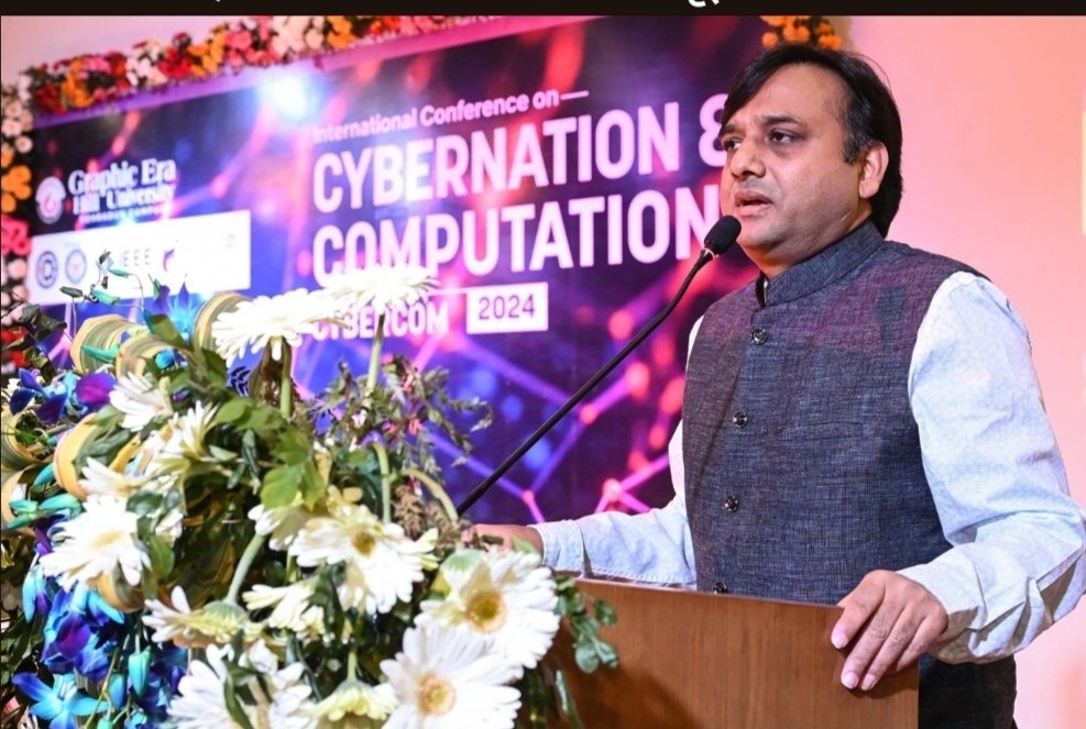 ग्राफिक एरा हिल यूनिवर्सिटी में साइबर नेशन एण्ड कम्प्यूटेशन पर अतंर्राष्ट्रीय सम्मेलन का आज आखिरी दिन था। सम्मेलन के समापन सत्र में साफ्टवेयर टेक्नोलाॅजी पार्क आॅफ इण्डिया के निदेशक अशोक कुमार मुख्य अतिथि के रूप में सम्बोधित कर रहे थे। उन्हांेने कहा कि केन्द्र सरकार ने तकनीकी क्षेत्र में कई नये कदम उठाये हैं इनमें सेमिकन्डक्टर मिशन, एआई मिशन, क्वान्टम मिशन जैसे अनेकों मिशन शामिल हैं ताकि युवाओं को और बेहतर तरीके से नवाचार से जोड़ा जाये। श्री अशोक ने कहा कि आने वाला समय स्मार्ट टेक्नोलाॅजी व एआई का है। इसके लिए जरूरी है कि छात्र-छात्राओं को इसके बारे में पढ़ाया जाये। उन्होंने छात्र-छात्राओं से इससे जुड़े क्षेत्रों में शोध करने के लिए आह्वान किया। रक्षा अनुसंधान एवं विकास संगठन के वैज्ञानिक डा. राकेश कुमार भारद्वाज ने छात्र-छात्राओं को टेरा हट्र्ज के विषय में जानकारी दी। उन्होंने कहा कि टेरा हट्र्ज एक नई संचार प्रणाली है यह टेरा हट्र्ज फ्रिक्वेंसी पर काम करती है जिसकी मदद से तेज डेटा ट्रांसफर किया जा सकता है। उन्होंने टेरा हट्र्ज को डिफेन्स व सिक्योरिटी के लिए उपयोगी बताते हुए कहा कि इसको एयरपोर्ट्स में इस्तेमाल कर सकते हैं। इसकी स्कैनिंग पावर सामान के अन्दर छुपे हुए किसी भी यंत्र को डिटेक्ट कर सकती है। साथ ही इसका इस्तेमाल किसी भी तरीके के रसायनिक खतरों को पहचानने में भी किया जा सकता है।