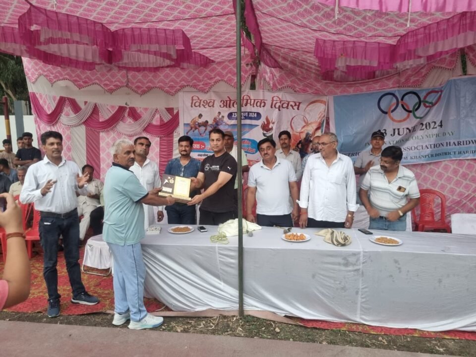 देहरादून :-जिला ओलंपिक संघ हरिद्वार तथा उत्तराखंड कबड्डी एसोशियेशन के सयुंक्त तत्वाधान मे राजेश पायलट स्टेडियम, खानपुर मे अंतरराष्ट्रीय ओलंपिक दिवस पर एक कार्यक्रम का आयोजन किया गया। कार्यक्रम मे उत्तराखंड ओलम्पिक संघ के कोषाध्यक्ष महेश जोशी ने बताया कि सन् 1948 से ही दुनियाभर में हर वर्ष ओलम्पिक दिवस का आयोजन अंतरराष्ट्रीय ओलंपिक समिति के दिशानिर्देश मे किया जाता रहा है। उन्होंने कहा कि खेल माध्यम से दुनियाभर के लगभग 200 देश आपस मे भाईचारे के साथ तथा जाति, धर्म, रंगभेद आदि से ऊपर उठ कर युवाओं के शारीरिक तथा मानसिक विकास की ओर काम कर रहे हैं। इस अवसर पर खानपुर के थानाध्यक्ष मोहन सिंह रावत ने कुछ समय पहले संपन्न राष्ट्रीय कबड्डी प्रतियोगिता मे मैडल जीतकर आने वाली बालिका खिलाड़ियों भूमि, समीक्षा तथा आयुषी को सम्मानित भी किया। जिला युवा कल्याण अधिकारी प्रमोद पाण्डेय द्वारा अंडमान बीच गेम्स में प्रथम स्थान प्राप्त करने वाले खिलाड़ी क्रिश व कोच रवि को सम्मानित किया। कार्यक्रम मे राज्य कबड्डी संघ के महासचिव चेतन जोशी तथा कोच ऋषिपाल सिंह ने खिलाडियों को खेल को बेहतरीन बनाने के गुर बताए तथा उनके उज्ज्वल भविष्य एवं सदैव सफलता की कामना की। कार्यक्रम का संचालन एडवोकेट सुभाष चंद्र द्वारा किया गया। कार्यक्रम मे आशीष कुमार, शालू तोमर, रवि कुमार, शलभ मित्तल, नितिन कुमार आदि ने अपने सम्बोधन में वरिष्ठ खिलाड़ियों के योगदान और उपलब्धियों की चर्चा करते हुए युवा खिलाड़ियों से सफल बनने के लिए समर्पित भाव एवं मेहनत से वरिष्ठ खिलाड़ियों के पदचिन्हों पर चलने की अपेक्षा की। इस दौरान हरिराम इन्टर कालेज, कनखल के क्रीड़ा प्रांगण मे सब जूनियर कबड्डी के बालक एवं बालिका वर्ग के मैच भी हुए जिसमें खिलाड़ियों ने अपने दमखम और हुनर का प्रदर्शन करते हुए उपस्थित जनसमुदाय को मंत्रमुग्ध कर दिया। अंतरराष्ट्रीय ओलंपिक दिवस पर आयोजित इस कार्यक्रम में बड़ी संख्या में खिलाड़ियों और खेलप्रेमियों ने प्रतिभाग किया।