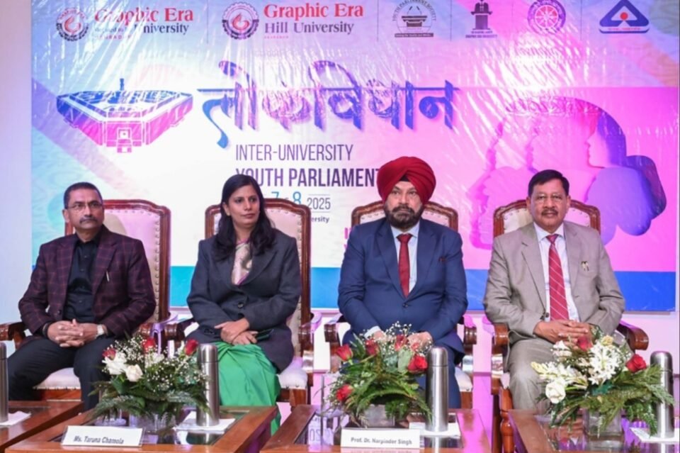ग्राफिक एरा हिल यूनिवर्सिटी में अंतर्राजीय यूथ पार्लियामेण्ट लोकविधान का आयोजन किया गया। इसमें विभिन्न विश्वविद्यालयों के 252 प्रतिनिधि भाग ले रहे हैं। आज ग्राफिक एरा डीम्ड यूनिवर्सिटी के कुलपति डा. नरपिन्दर सिंह ने यूथ पार्लियामेण्ट के उद्घाटन सत्र को सम्बोधित करते हुए कहा कि युवा, समाज के वास्तुकार हैं। लोकविधान जैसे कार्यक्रम युवाओं में समाज का नेतृत्व करने, बेहतर नीतियां बनाने व न्याय के हित में फैसला लेने की क्षमता जागृत करते हैं।