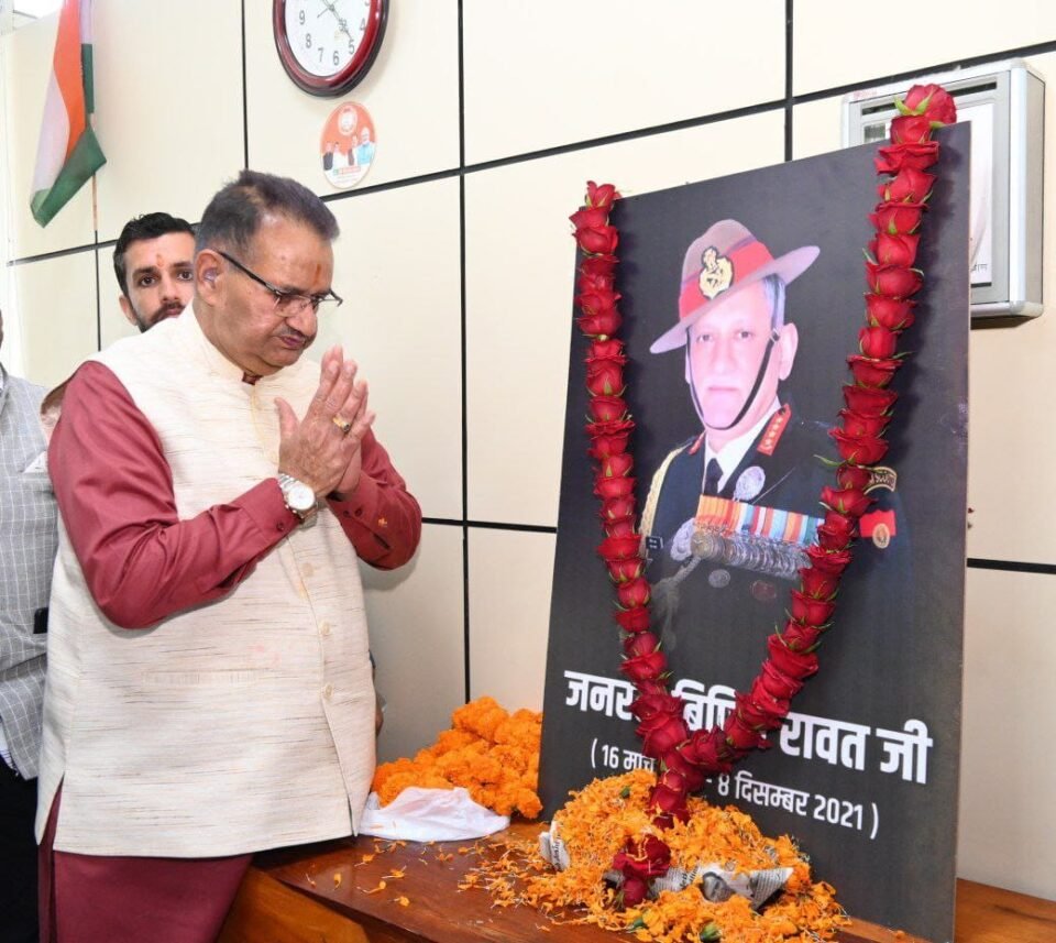 देहरादून, सैनिक कल्याण मंत्री गणेश जोशी ने आज अपने कैंप कार्यालय में देश के प्रथम चीफ ऑफ डिफेंस स्टाफ (सीडीएस) स्व. जनरल बिपिन रावत की जयंती के अवसर पर उनके चित्र पर पुष्पांजलि अर्पित कर श्रद्धांजलि दी। इस अवसर पर सैनिक कल्याण मंत्री गणेश जोशी ने जनरल बिपिन रावत के प्रति अपनी स्मृतियों को साझा करते हुए कहा कि जब वह पहाड़ के युवाओं को सेना में भर्ती के लिए लंबाई में छूट दिलाने को लेकर जनरल रावत से मिले थे, तो उन्होंने सकारात्मक प्रतिक्रिया दी थी। उसी का परिणाम है कि आज उत्तराखंड के युवाओं को सेना में लंबाई में 5 सेंटीमीटर की छूट मिल रही है। उन्होंने कहा कि देहरादून के गुनियाल गांव में भव्य सैन्यधाम का निर्माण किया जा रहा है, जिसका मुख्य द्वार सीडीएस जनरल बिपिन रावत के नाम पर समर्पित होगा। उन्होंने कहा कि जनरल बिपिन रावत उत्तराखंड के वीर सपूत थे, जिन्होंने अपनी असाधारण वीरता और साहस से देश का गौरव बढ़ाया। उनका जीवन हमेशा राष्ट्रभक्ति और प्रेरणा का स्रोत बना रहेगा।