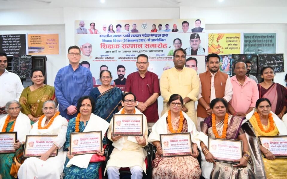 देहरादून, कैबिनेट मंत्री गणेश जोशी ने आज देहरादून जीएमएस रोड़ स्थित सामुदायिक भवन इन्दिरापुरम में भारतीय जनता पार्टी सरदार पटेल मण्डल कैंट विधानसभा द्वारा शिक्षक दिवस के अवसर पर आयोजित सम्मान समारोह कार्यक्रम में बतौर मुख्य अतिथि प्रतिभाग किया। इस अवसर पर मंत्री जोशी ने उत्कृष्ट कार्य करने वाले शिक्षकों को शॉल व स्मृति चिन्ह देकर सम्मानित किया।