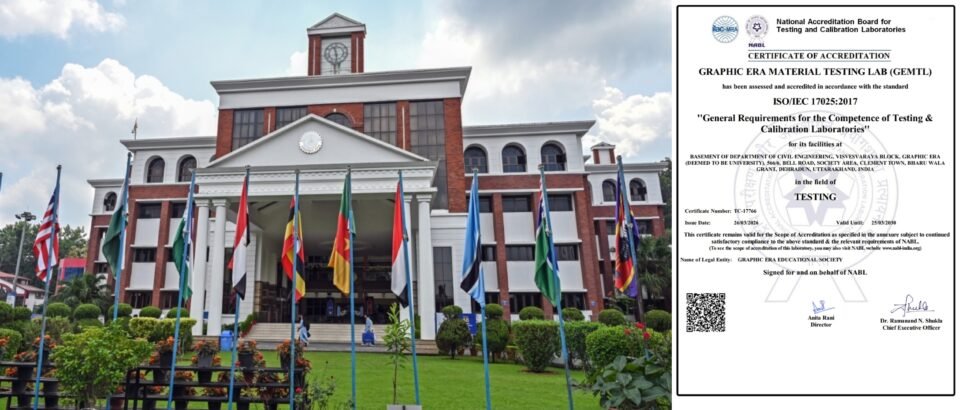 देहरादून। ग्राफिक एरा डीम्ड यूनिवर्सिटी में अब सड़कों, पुलों और इमारतों में उपयोग की जाने वाली निर्माण सामग्री की गुणवत्ता की प्रमाणित जांच की सुविधा उपलब्ध होगी। नेशनल एक्रीडिटेशन बोर्ड फॉर टेस्टिंग एंड कैलिब्रेशन लैबोरेट्रीज (एनएबीएल) ने विश्वविद्यालय की मैटेरियल्स टेस्टिंग लैब को मान्यता प्रदान की है।