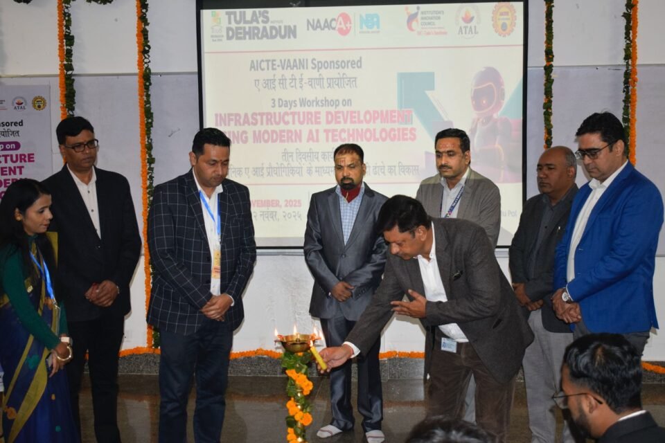 देहरादून: तुलाज़ इंस्टीट्यूट में ‘इंफ्रास्ट्रक्चर डेवलपमेंट थ्रू मॉडर्न ऐआई टेक्नोलॉजीज’ विषय पर ऐआईसीटीई – वानी द्वारा प्रायोजित तीन दिवसीय राष्ट्रीय कार्यशाला का शुभारम्भ आज कॉलेज परिसर में किया गया।