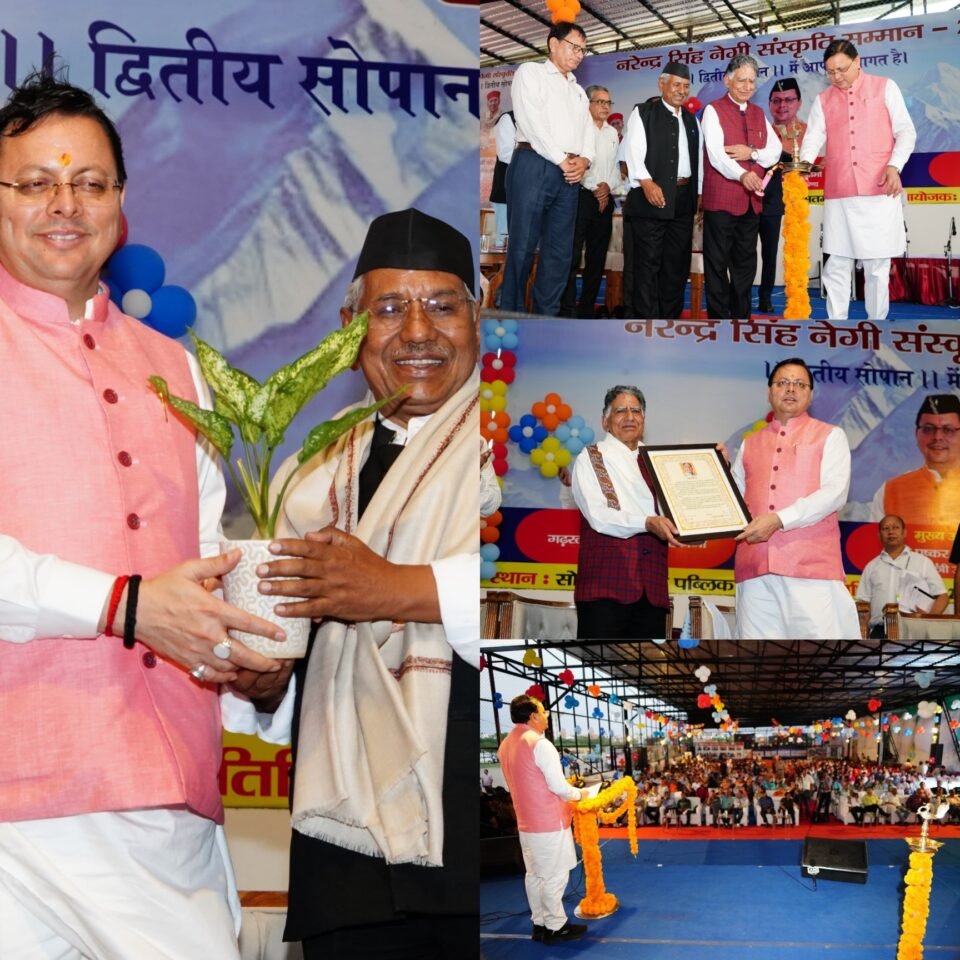 देहरादून,। मुख्यमंत्री  पुष्कर सिंह धामी ने सोशल बलूनी पब्लिक स्कूल, देहरादून में आयोजित ‘नरेन्द्र सिंह नेगी संस्कृति सम्मान’ समारोह में प्रतिभाग किया। इस अवसर पर मुख्यमंत्री ने हिमाचल प्रदेश के वरिष्ठ साहित्यकार  एस.आर. हरनोट को ‘नरेन्द्र सिंह नेगी संस्कृति सम्मान’ से सम्मानित किया।