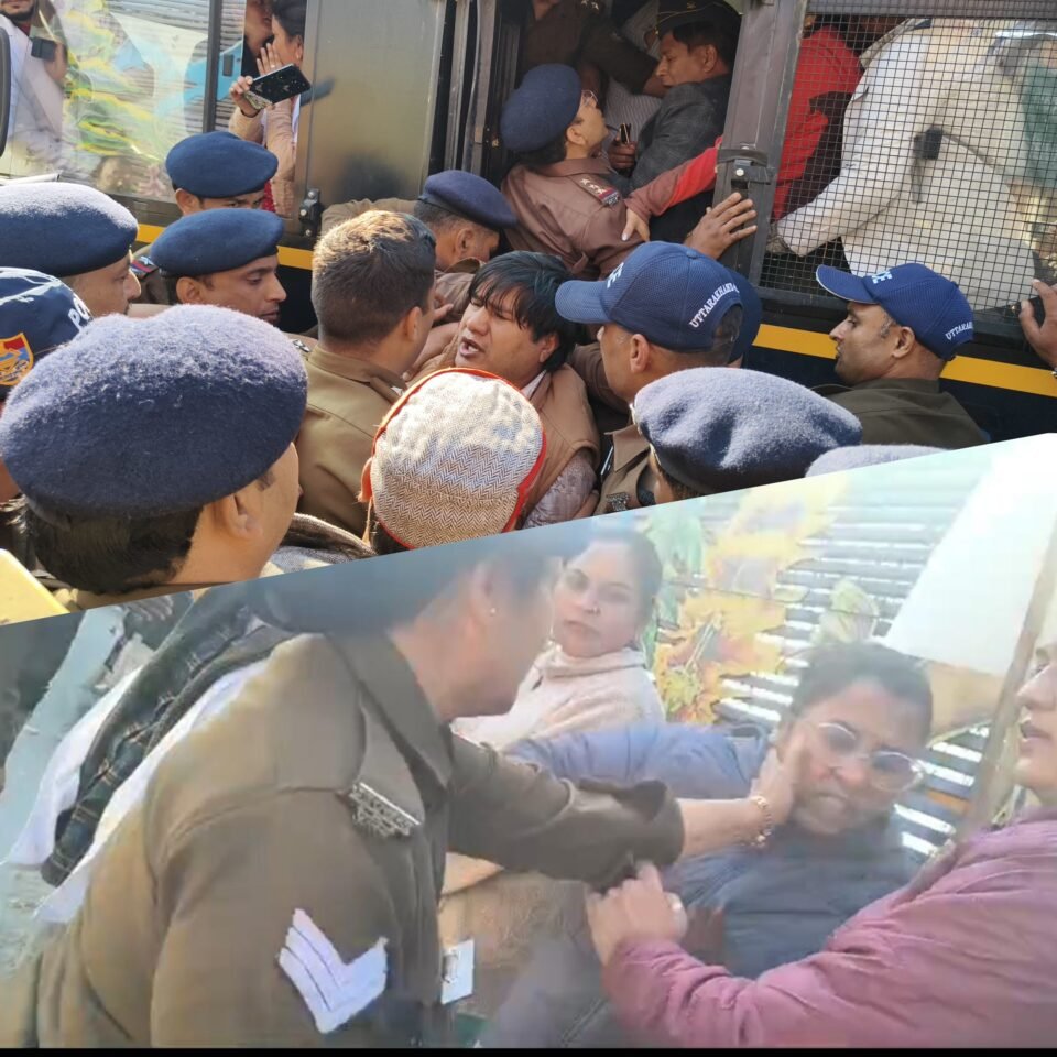 अभ्यर्थी मधु उनियाल ने आरोप लगाया कि शांतिपूर्ण कूच के बावजूद पुलिस ने अमानवीय व्यवहार करते हुए बल प्रयोग किया और महिलाओं को जबरन वाहनों में बैठाकर एकता विहार धरना स्थल भेज दिया।