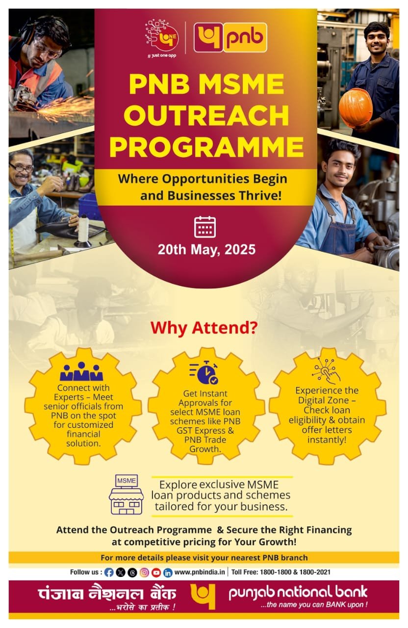 देहरादून- सार्वजनिक क्षेत्र में देश के अग्रणी बैंकों में से एक, पंजाब नेशनल बैंक (पीएनबी) ने अपना व्यापक मासिक एमएसएमई आउटरीच कार्यक्रम पेश किया है। यह 20.05.2025 को आयोजित होने वाली एक देशव्यापी रणनीतिक पहल है जो पूरे भारत के एमएसएमई ग्राहको को अनुकूलित वित्तीय समाधान पेश करेगी।