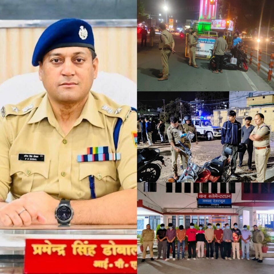 देहरादून। वरिष्ठ पुलिस अधीक्षक (एसएसपी) देहरादून के निर्देशों पर जनपद पुलिस द्वारा हुड़दंगी छात्रों/युवकों पर प्रभावी नियंत्रण हेतु “ऑपरेशन नाइट वॉच” अभियान चलाया जा रहा है। इस अभियान के तहत नगर से लेकर देहात तक सभी थाना क्षेत्रों में रात्रि के समय सघन चेकिंग अभियान चलाते हुए व्यापक स्तर पर कार्रवाई की गई।