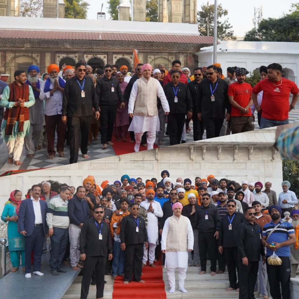 ढोल-नगाड़ों और पुष्पवर्षा के बीच श्री दरबार साहिब में संगत का स्वागत