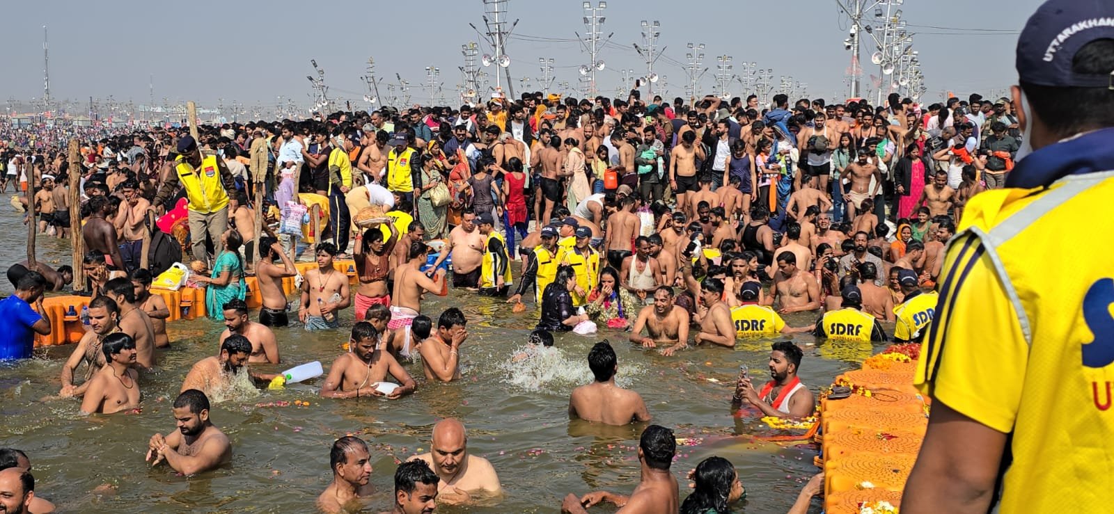 प्रयागराज में अमृत स्नान पर एसडीआरएफ उत्तराखंड पुलिस रही तैनात