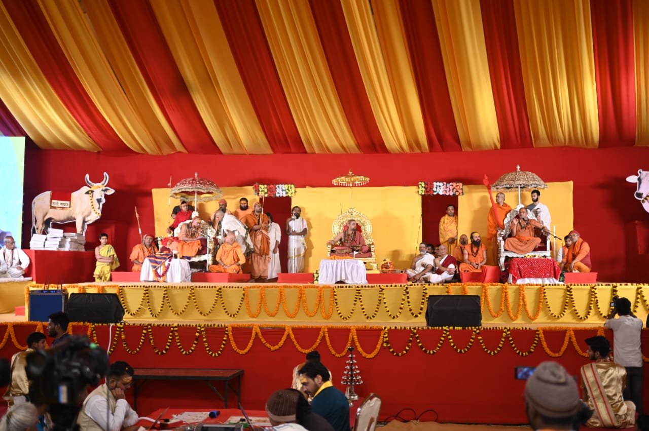 प्रयागराज, परम धर्म संसद के शिविर में तीन शंकराचार्यों ने जारी किया धर्मादेश, गौ माता को राष्ट्र माता बनाने के किए भरी हुंकार