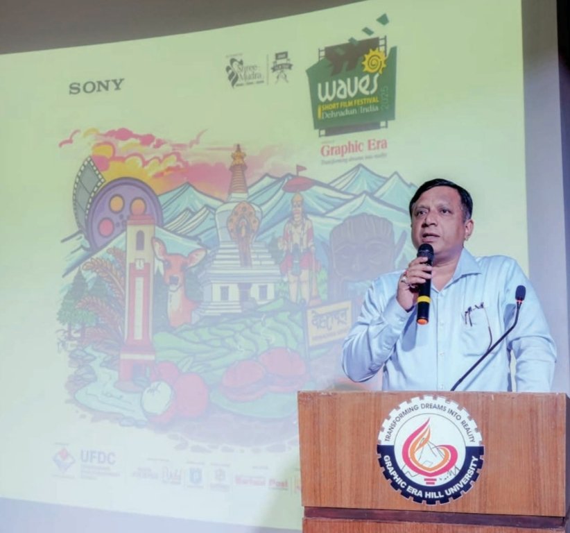 देहरादून,। ग्राफिक एरा हिल यूनिवर्सिटी का माहौल फिल्म, संगीत और अभिव्यक्ति के रंगों से भर गया जब शॉर्ट फिल्म फेस्टिवल ‘‘वेव्स‘‘ की शुरुआत हुई। उत्तराखंड फिल्म डेवलपमेंट काउंसिल के सीईओ व आईएएस श्री बंशीधर तिवारी ने कहा कि आज के दौर में कंटेंट ही असली आधार है फिर चाहे वह सिनेमा हो, पत्रकारिता हो, या सोशल मीडिया।