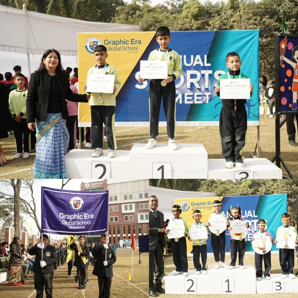 देहरादून, ग्राफिक एरा ग्लोबल विद्यालय में वार्षिक स्पोर्ट्स डे का आयोजन अत्यंत हर्षोल्लास, उत्साह और अनुशासनपूर्ण वातावरण में किया गया। कार्यक्रम में मुख्य अतिथि की गरिमामयी उपस्थिति ने आयोजन की शोभा को और बढ़ा दिया।स्पोर्ट्स डे का शुभारंभ ध्वजारोहण एवं मशाल प्रज्ज्वलन के साथ हुआ। इसके उपरांत विद्यालय के प्रधानाचार्य द्वारा सभी विद्यार्थियों को खेल शपथ दिलाई गई, जिसमें ईमानदारी, अनुशासन एवं खेल भावना के साथ प्रतियोगिताओं में भाग लेने का संकल्प लिया गया। 2025 में उत्तराखंड राज्य की रजत जयंती के अवसर पर इस स्पोर्ट्स डे को विशेष रूप से राज्य को समर्पित किया गया। इसी क्रम में प्री-प्राइमरी के नन्हे विद्यार्थियों द्वारा उत्तराखंड के राज्य प्रतीकों पर आधारित आकर्षक एवं मनमोहक प्रस्तुति दी गई, जिसने उपस्थित जनसमूह का मन मोह लिया। कार्यक्रम के दौरान विभिन्न कक्षाओं के विद्यार्थियों के लिए अलग-अलग प्रकार की दौड़ प्रतियोगिताओं का आयोजन किया गया। साथ ही विद्यार्थियों द्वारा प्रस्तुत योगा ड्रिल ने स्वस्थ जीवन शैली, अनुशासन और संतुलन का प्रभावशाली संदेश दिया।प्रतियोगिताओं में उत्कृष्ट प्रदर्शन करने वाले विजेता विद्यार्थियों को मेडल एवं प्रमाण पत्र प्रदान कर सम्मानित किया गया। मुख्य अतिथि ने अपने संबोधन में विद्यार्थियों को खेलों के महत्व, टीम भावना तथा जीवन में अनुशासन की भूमिका पर प्रेरणादायक विचार साझा किए। समापन राष्ट्रगान के साथ किया गया। यह आयोजन विद्यार्थियों में खेल भावना के विकास के साथ-साथ उत्तराखंड राज्य के गौरवशाली इतिहास एवं संस्कृति के प्रति सम्मान और गर्व की भावना जागृत करने में सफल रहा।